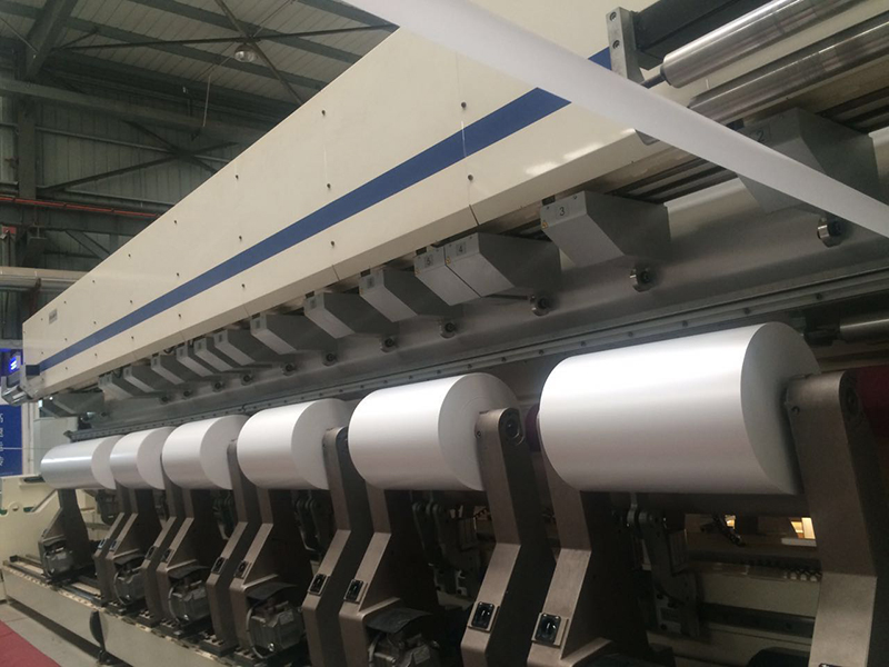 將黃色(sè)離型紙進(jìn)行雙工位放卷,在經過特殊烘箱隧道(dào),塗油烘(hōng)幹,然後經過擠出機熔融的PE聚乙烯在線複合,後經(jīng)過收卷。