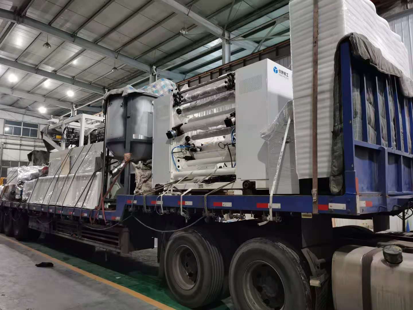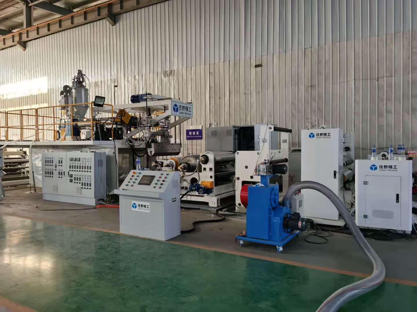 安裝完畢。與市麵上的流延機相比,本機實現了一機多用的創新。本機是一台多功能流延膜設備,兼具了流延鏡麵薄膜的生產,廣泛應用於包裝領域,也擁有(yǒu)膜麵壓花用於製(zhì)造手套膜(mó)等產品的功能。整機采用PLC全自動監測、顯示與(yǔ)控製,雙(shuāng)工位全自動不停機換卷。