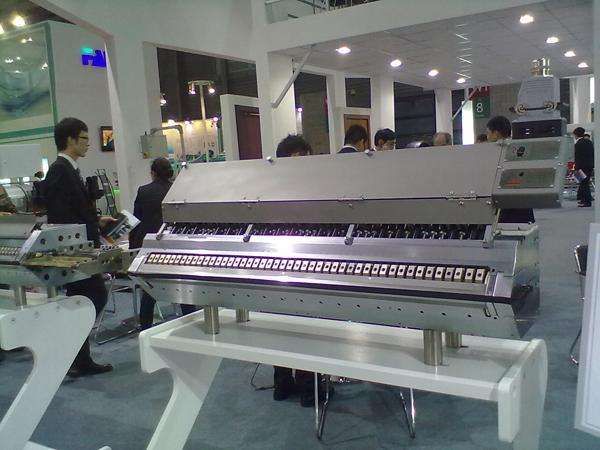 對於(yú)PET來說,由於它的黏度低,采用模頭位於驟冷輥正上方的(de)流(liú)延方式,迅速固化驟冷(lěng)的關鍵是將熔融樹脂快速地按壓在驟冷(lěng)輥上,如果按壓效果不好,不僅會降(jiàng)低冷卻效果,而且在熔融樹脂和驟冷輥之間還會(huì)夾帶空氣,氣泡停(tíng)留在基片中會引(yǐn)起表麵粗糙(cāo)或細下氣泡等現象。將熔融樹脂粘到驟冷輥上有許多按壓方法(fǎ),如:“氣刀(dāo)”、“壓力輥”、“噴液體”和“靜電”等方法,氣刀和靜電法分別是PP和PET 普(pǔ)遍使用的方(fāng)法。