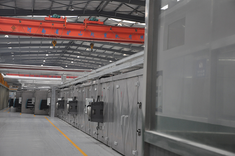 石頭紙的雙向拉伸生產線,涉及石頭紙的加工裝置。包括(kuò)自前而後依次排列的三層擠(jǐ)出機、壓花成型裝置、前測厚裝置、縱向拉伸裝置、橫向拉伸裝置、後測厚裝置、冷卻修(xiū)邊(biān)引(yǐn)取裝置、第一張力卷收裝置及第二張力卷收裝置,壓花成型裝置與三層擠出機承接,前測厚裝置與(yǔ)壓花成(chéng)型裝置承接,縱向拉伸裝置與(yǔ)前測厚(hòu)裝置承接,橫向拉伸裝置與縱向拉伸裝置承接,後測厚裝置與橫向拉伸裝(zhuāng)置承(chéng)接,冷卻修邊引取裝置與(yǔ)後測厚裝置(zhì)承接,第(dì)一張力卷收裝置與冷卻修邊引取裝置承接,第二張力卷收裝置與第一張力卷(juàn)收裝置承(chéng)接(jiē)。使石頭紙在縱(zòng)向拉伸後接著進行橫向拉伸,致使石頭紙的厚度變薄,利於減輕紙張的重量,提高紙張質(zhì)量,降低製造成本(běn)。BOPP-BOPE-BOPLA-BOPBT雙向拉伸設備