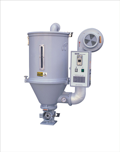 原料幹燥機的作用主(zhǔ)要是(shì)清除原料中的水分。獨立使用時,可(kě)用烘(hōng)箱式幹燥裝置。幹燥機(jī)是專為擠(jǐ)出(chū)機生產(chǎn)配套用的料鬥式(shì)幹燥機。該設備已有專業標(biāo)準,應(yīng)用時,可根據擠出機生產用料量大(dà)小,選取相匹配的規格。料鬥式幹燥機的工作方法是:開動風機,風機把經過電阻加熱的空氣由料鬥下部送入幹燥室,熱風在幹燥(zào)室內由下往上(shàng)吹,當熱風在原料中通過時,把原料中的水(shuǐ)分加熱蒸發帶出,則潮濕的熱氣流由幹燥室(shì)頂部排出。熱風(fēng)連續地進出,把原料中的水分一點點蒸發帶出,達到幹燥原料的目的。
