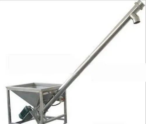 螺旋上料裝置,也稱為彈簧上料(liào)裝置。它是(shì)把(bǎ)一根螺旋(xuán)彈簧裝在橡膠管內(nèi),彈簧直接由電動機驅動,在橡膠管內高速旋轉。當料鬥需要上(shàng)料(liào)時,起動電動機帶動彈簧旋轉,原料被撣簧螺旋帶(dài)動上升,換膠管(guǎn)上端(duān)對準料鬥處開有一排料口,上並至排料口處的原料被彈簧旋轉的離心(xīn)力拋出料口(kǒu),進入料鬥。此種上料裝置結構簡單,操作和維修都很方便(biàn),適合(hé)於粒料和粉料的輸送。