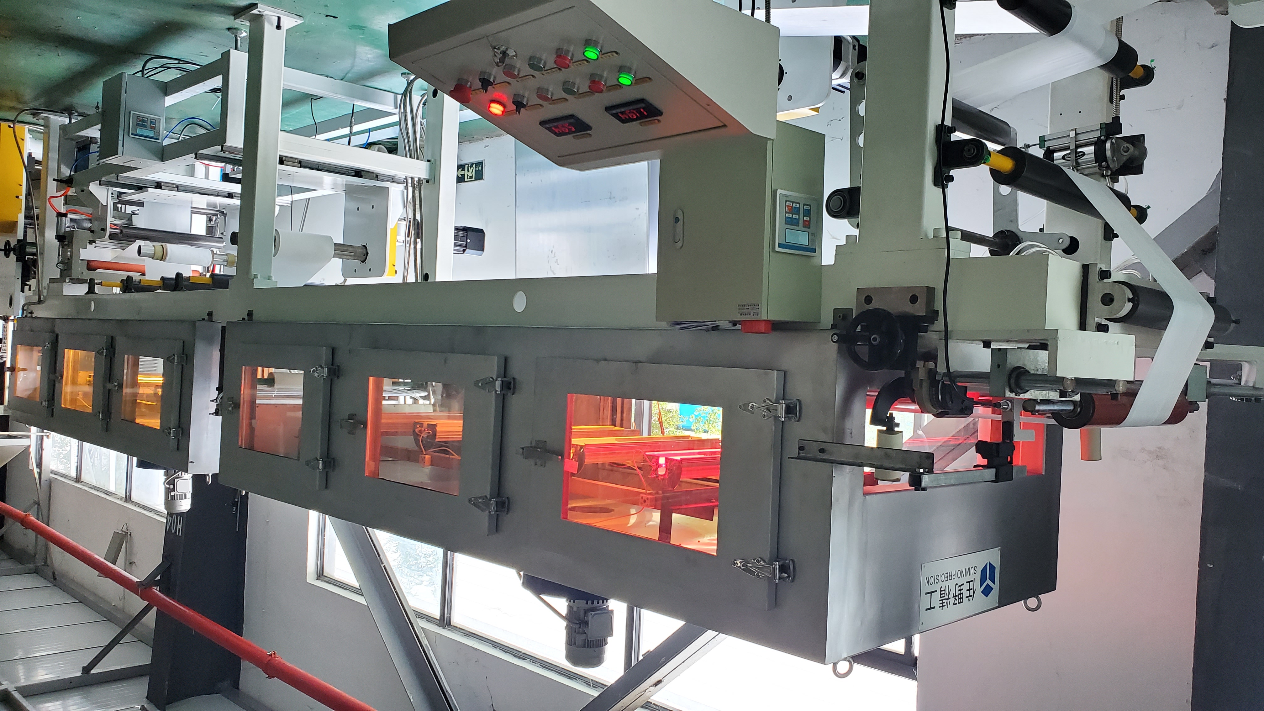 塗布(bù)複合設備主要應(yīng)用於(yú)塑料薄膜、紙類、電化鋁(lǚ)、布料及皮革等多種卷筒基材(cái)的(de)