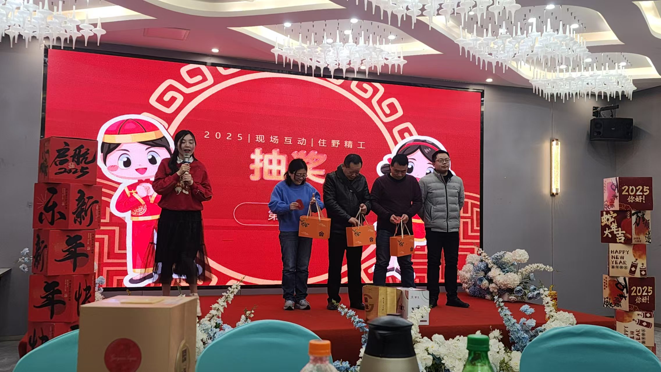 隨後的抽獎環節將(jiāng)活(huó)動推向(xiàng)高潮。公司準備了實用的生活用品和精美禮品作為獎品,還為每一位員工發放紅包,寓意新年紅火。現場歡呼聲、掌聲不斷,員工們笑容(róng)滿麵(miàn)。