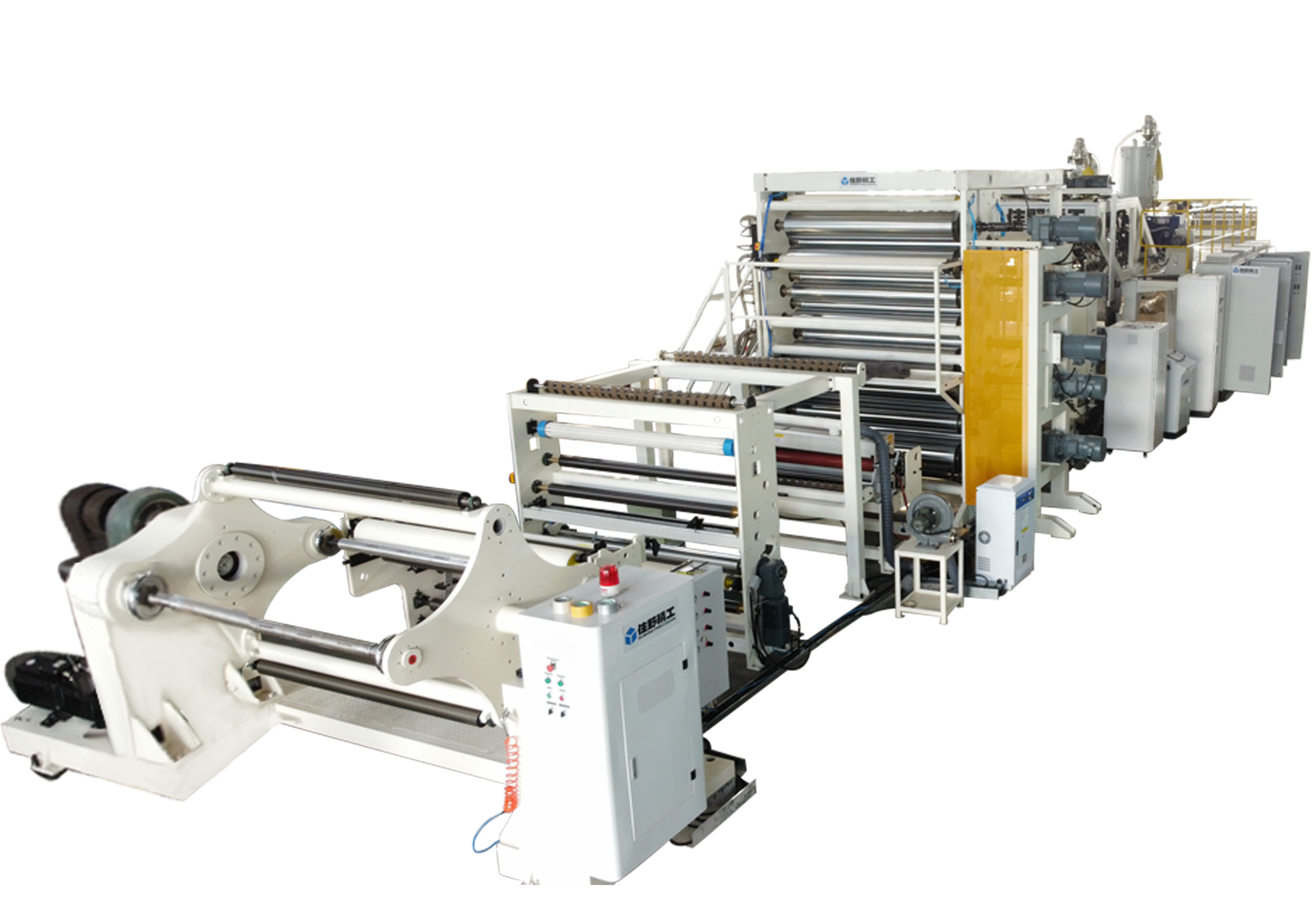 它由原料輸送、擠出流(liú)延(yán)、雙向拉伸、牽引卷繞、分切、過程自動控製係統等組成,用於生產各種規格機械電性能優(yōu)良、耐寒性好、氣(qì)相縱向拉伸薄膜具有密封性和尺(chǐ)寸穩定性。 拉伸薄膜是一種優良的包裝和絕緣材料,廣(guǎng)泛應用於食品包裝、不透明冷飲包裝、膠帶、電容器薄膜和合成紙等領域。用於生產各種規格機械(xiè)電氣性能優異、耐寒性好、縱向拉伸薄膜具有緊密(mì)性和尺寸(cùn)穩(wěn)定性。